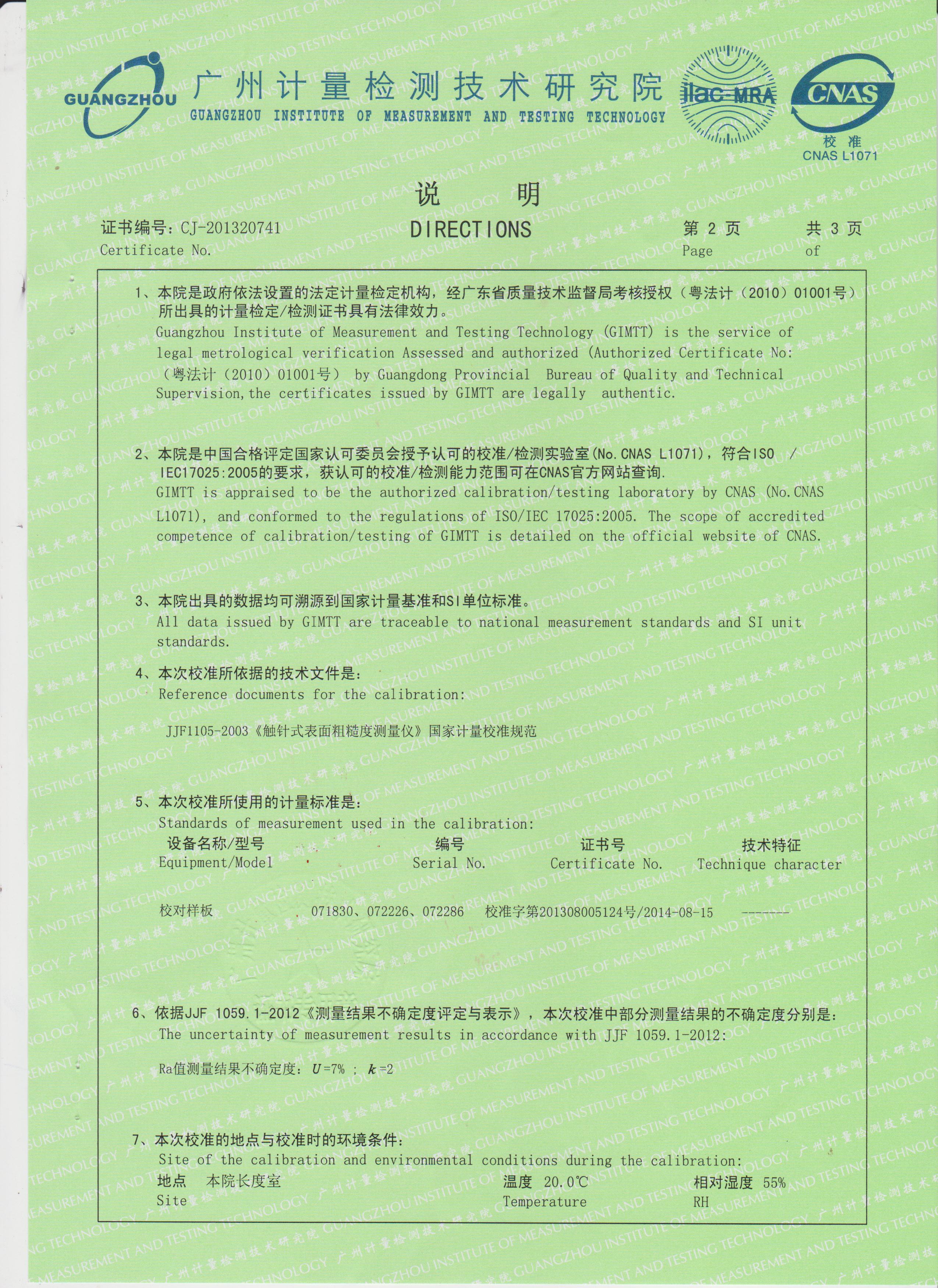 Optional Calibration Certificate from third party lab: